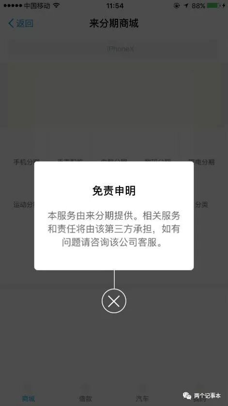 近期,关注现金贷的细心用户应该会发现,近期在支付宝中打开第三方应用来分期时,会有下图所示的这个免责申(声)明。